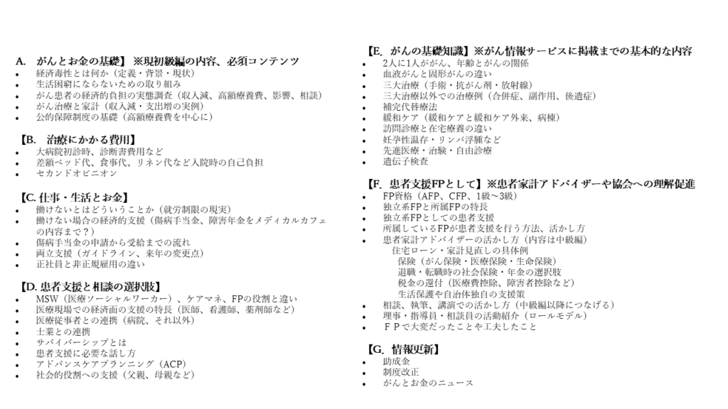 患者さんの家計支援において重要なこの2点を目標とした、「がんとお金の基礎講座」(2時間)を開催してきました。